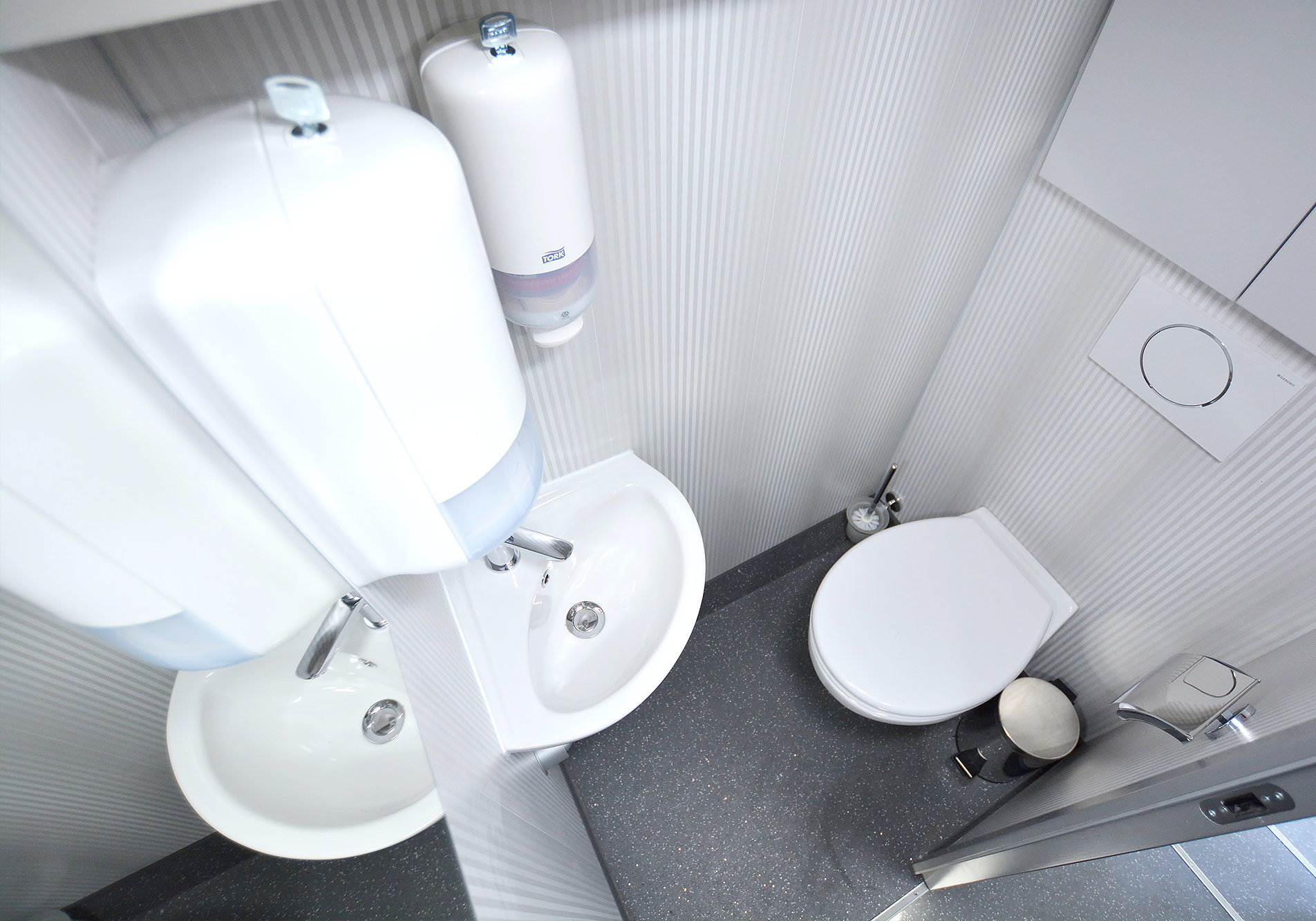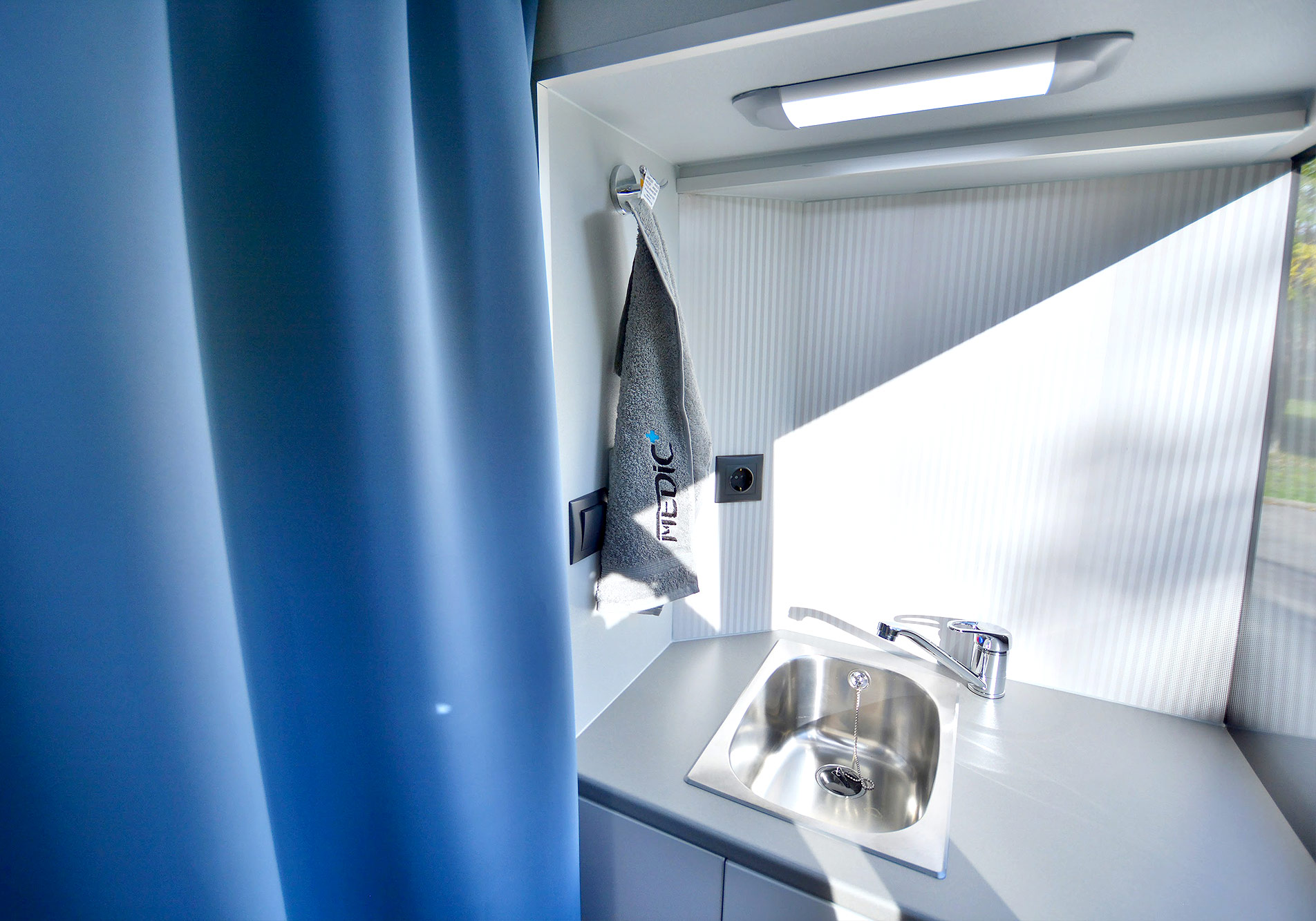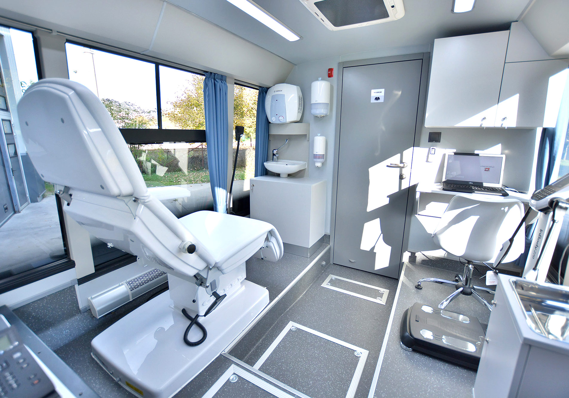 Az optimalizált elrendezés és a járművön belüli betegút újragondolása két különálló vizsgálóhelyiség kialakítását tette lehetővé, így a szűrőegységben két diagnosztikai csapat dolgozhat párhuzamosan: az akadálymentesen megközelíthető első vizsgálóban a nőgyógyászati szűrővizsgálat, míg a busz hátsó részében általános diagnosztikai vizsgálatok és konzultáció végezhető.